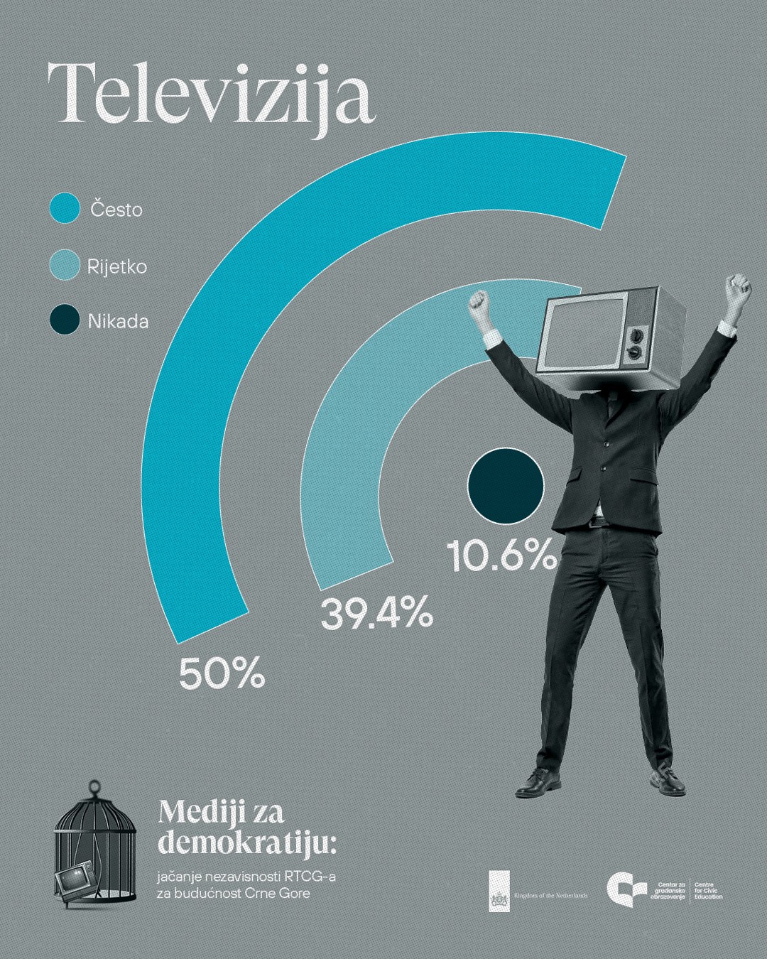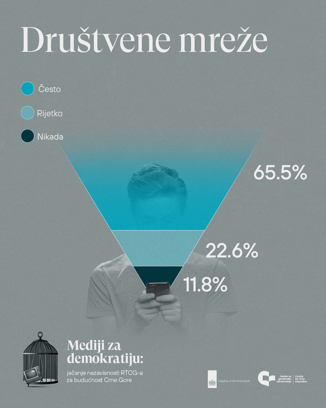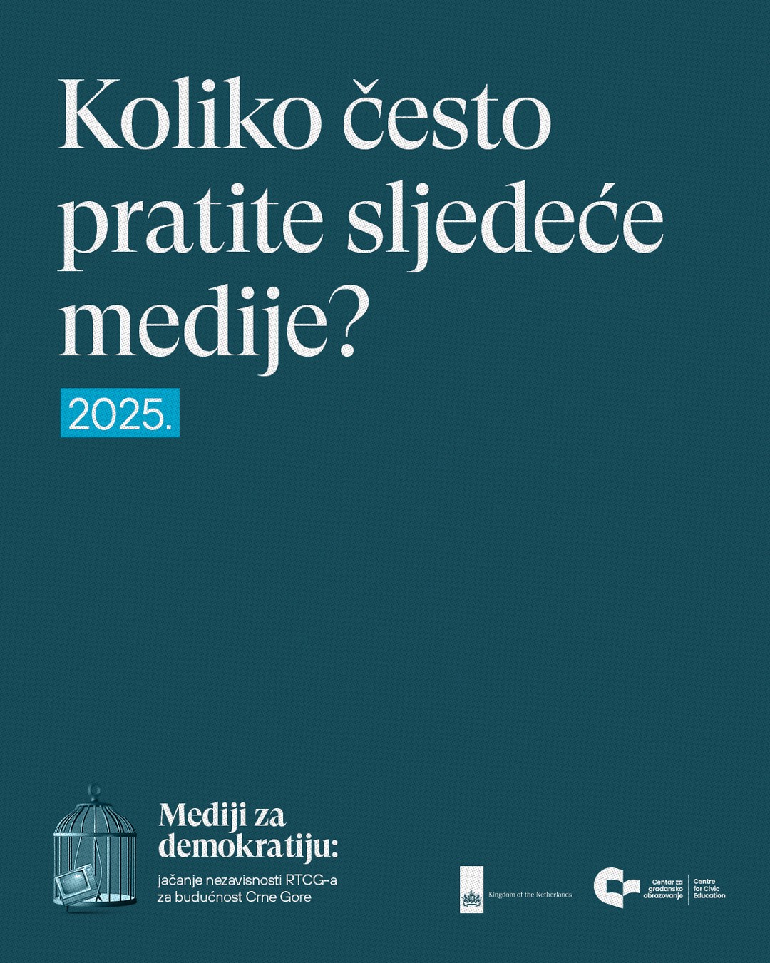 Iako mediji ostaju jedan od ključnih izvora informisanja građanki i građana Crne Gore, uz stabilnu dominaciju digitalnih medija, odnos građanstva prema njima postaje sve složeniji, jer to prati pad povjerenja u plasirane informacije, naročito na društvenim mrežama, pokazuje istraživanje Centra za građansko obrazovanje (CGO), sprovedeno u okviru projekta „Mediji za demokratiju: jačanje nezavisnosti RTCG-a za budućnost Crne Gore“, uz podršku Ministarstva vanjskih poslova Holandije.