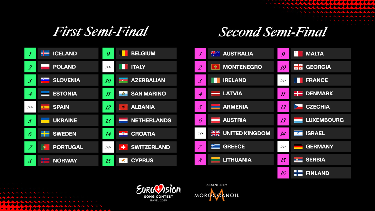 Krajem prošlom mjeseca je određen redosljed nastupa u polufinalima Eurosonga 2025. u Bazelu.